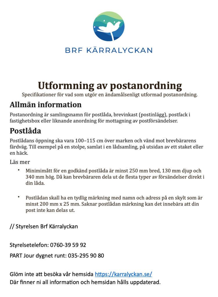 Utformning av postanordning