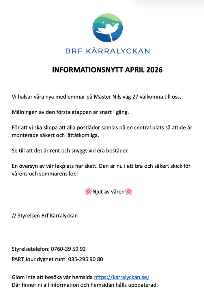 Mer information delades ut tillsammans med förra Informationsnytt.