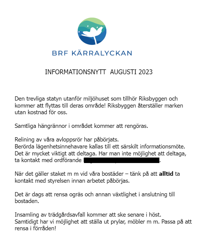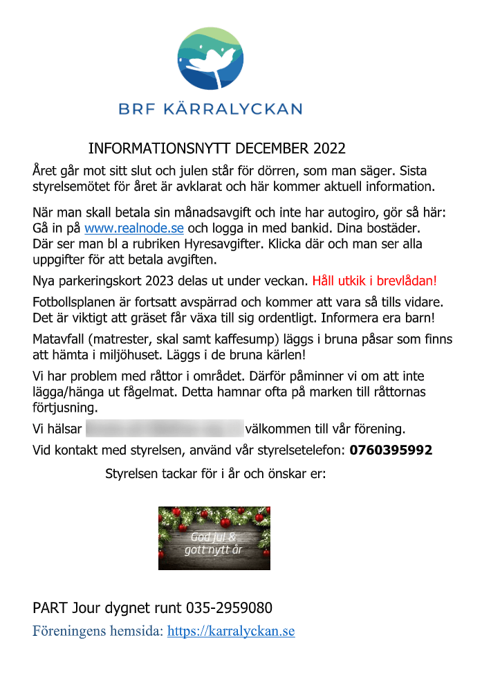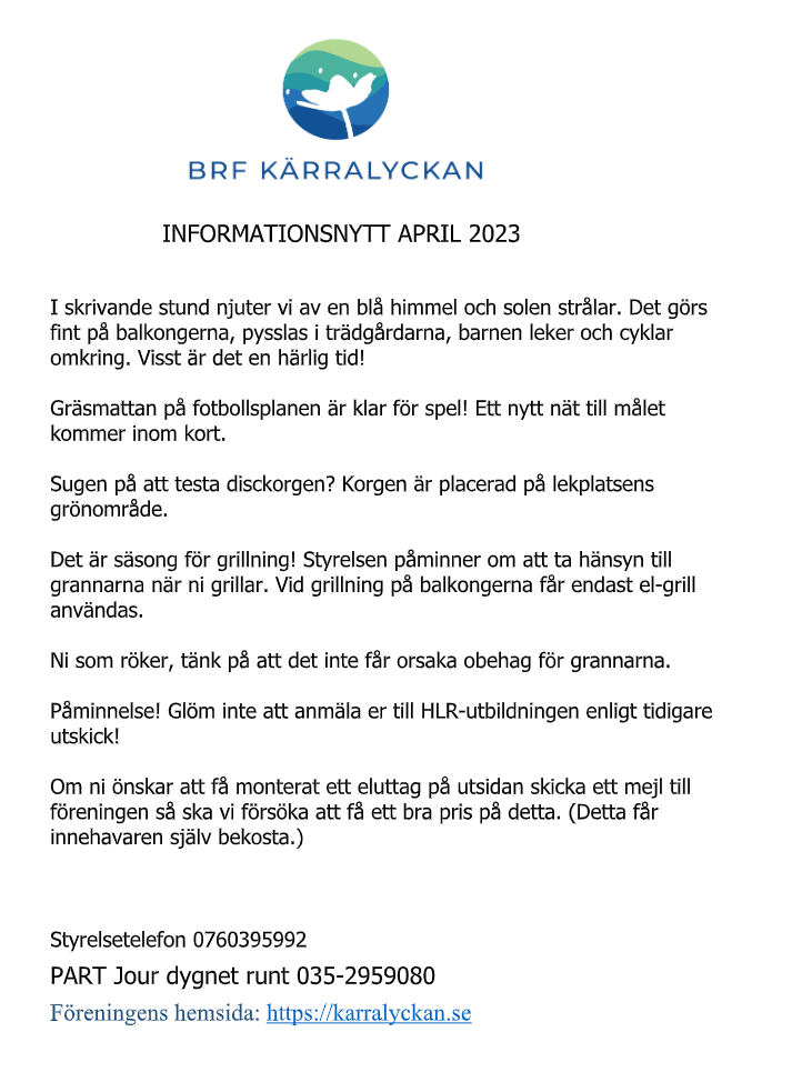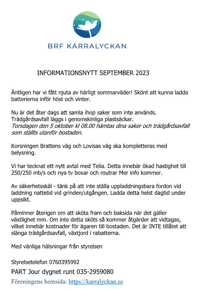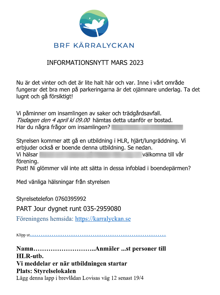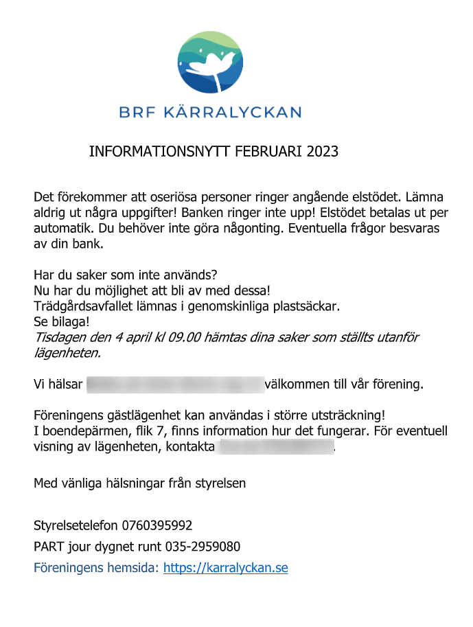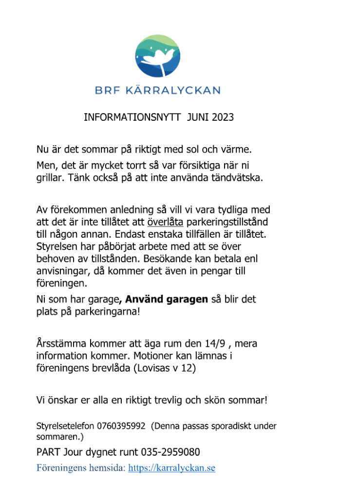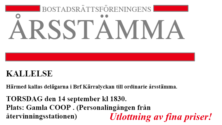Kallelse till årtstämma har nu delats ut till alla boende.