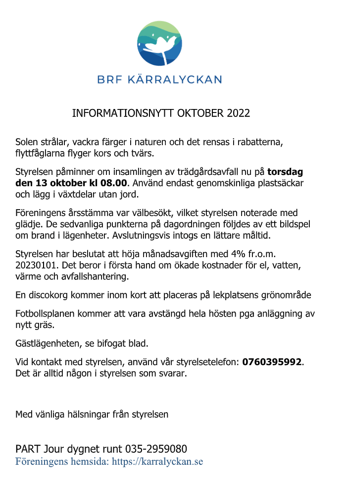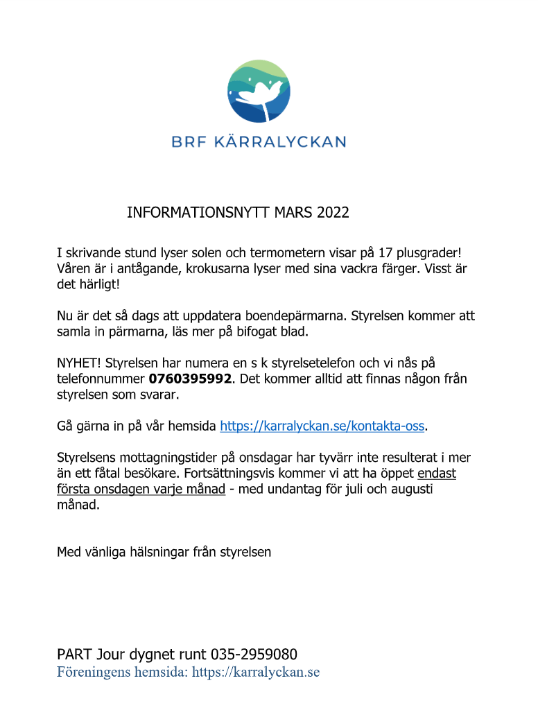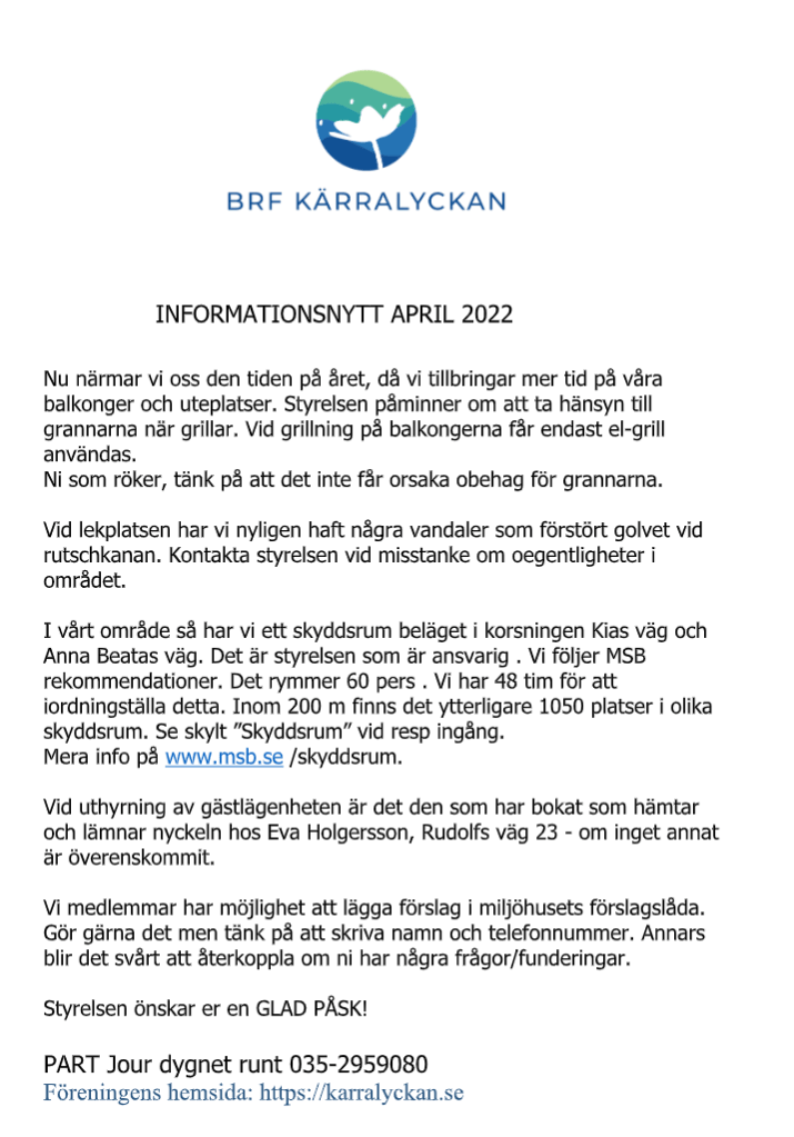 Vi har precis lagt upp information om vår nya boendewebb. Ta en titt genom att klicka på Boendewebben.