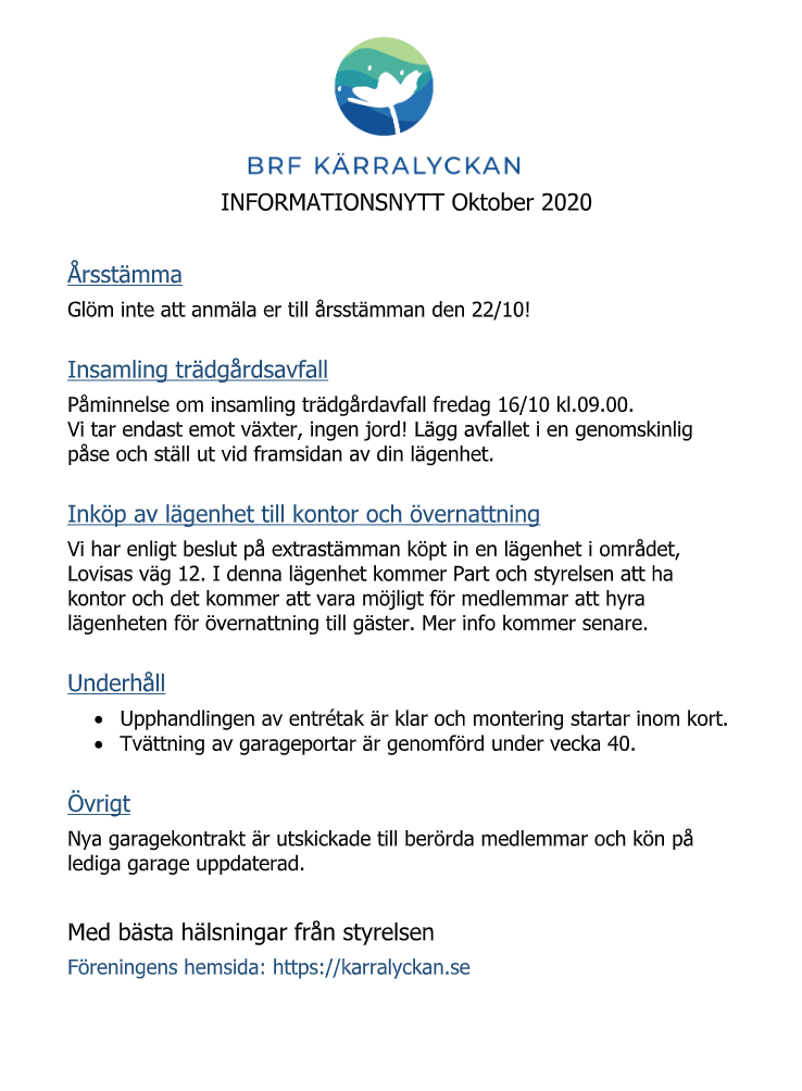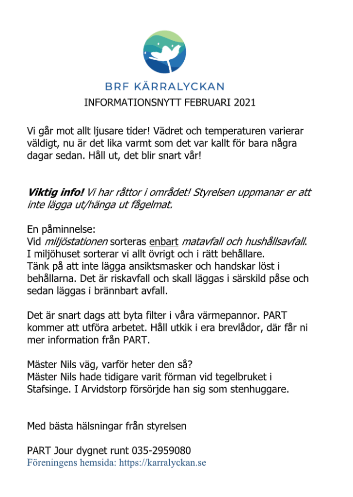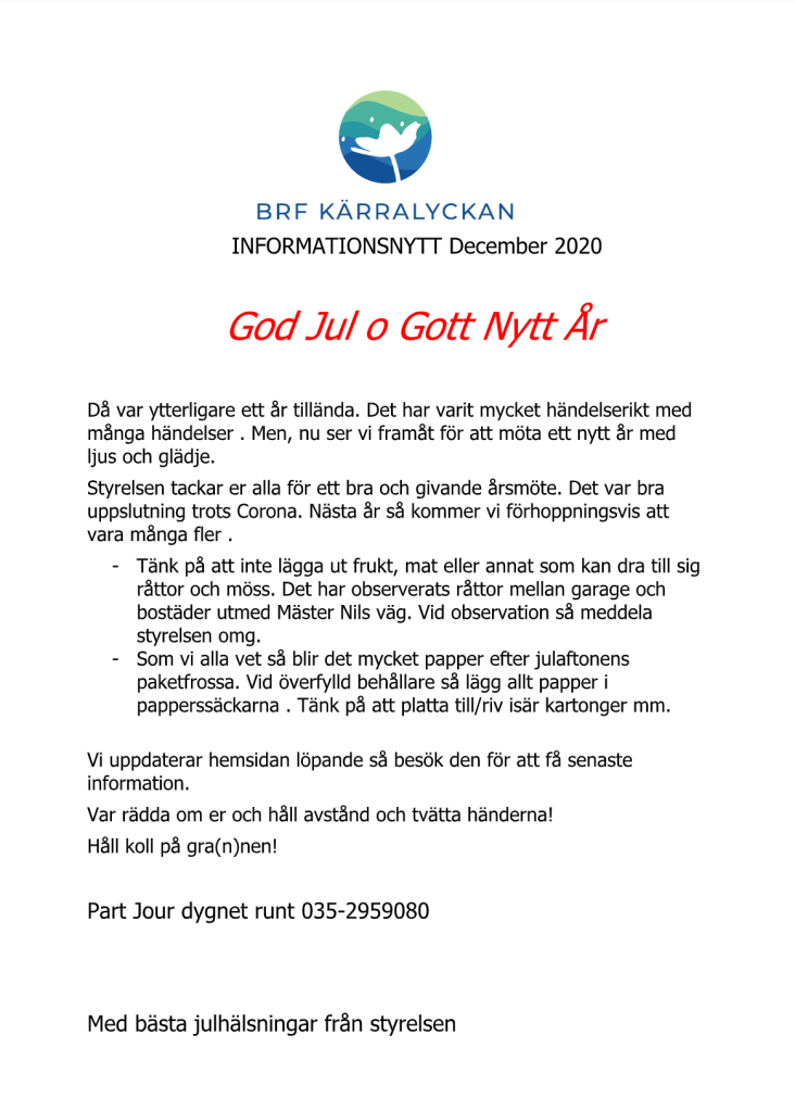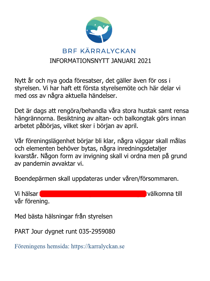 Här kommer ett något försenat informationsnytt för januari 2020.