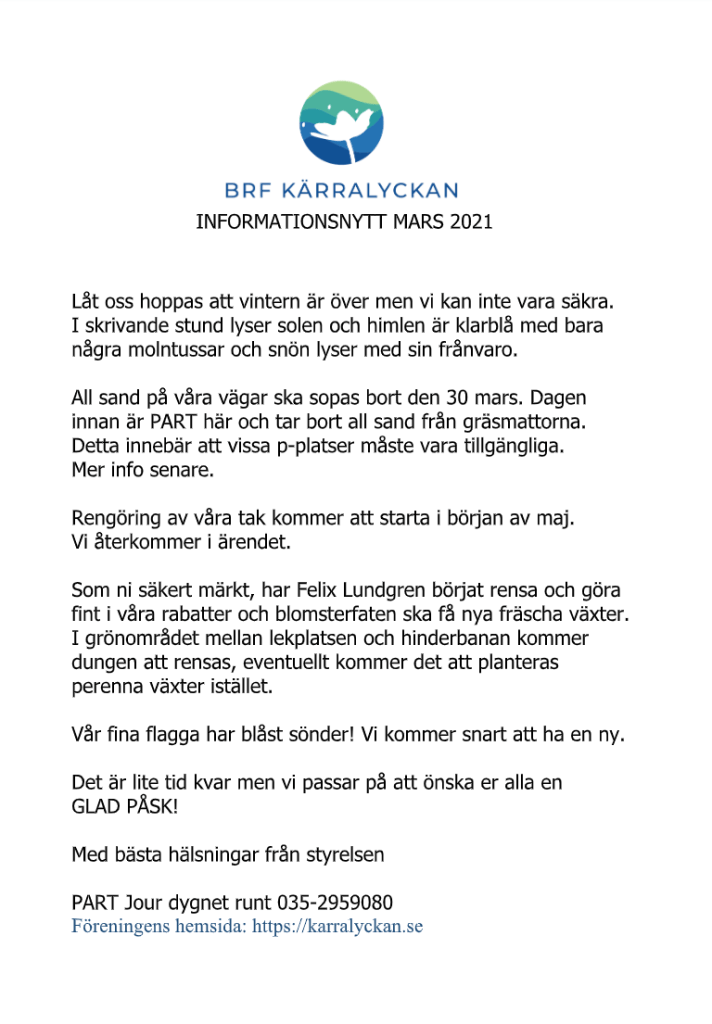 Denna information kommer även att finnas tillgänglig i boendepärmen, som kommer att uppdateras efter sommaren.