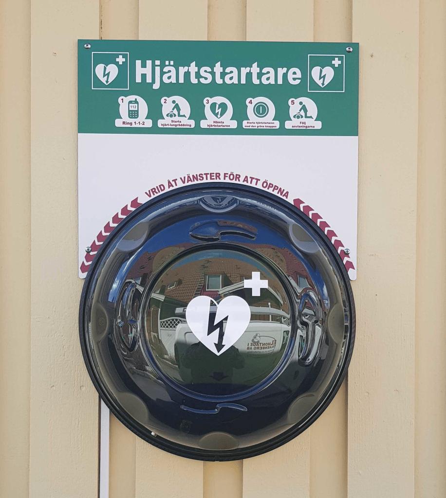 Hjärtstartare Vi har en hjärtstartare i området. Denna finns placerat på ytterväggen på Rudolfs Väg 23. Kortfattad information om hjärt-lungräddning.